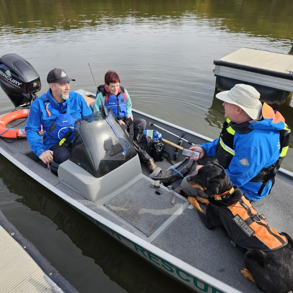 AMRG is dispatched to searches by Allegheny County 911 and we are requested to assist our law enforcement partners about 40 to 50 times per year.  Sometimes we have several close together and then none for a long time. Operations are mostly missing person searches (hunters, children, Alzheimer’s patients, crime victims), with the occasional downed aircraft searches and mountain or cave rescues for variety, but the majority of our rescue work is when we look for a missing person.  Our searches can happen any time of the day or night, even at three in the morning during freezing rain (so don’t say you weren’t warned!) or during the work week.  As volunteers, there is not a requirement that you go on a particular mission — members respond as they are available. We do have some members who are retired or who have flexible work schedules, which allow them to attend more searches than other members working a regular work schedule.